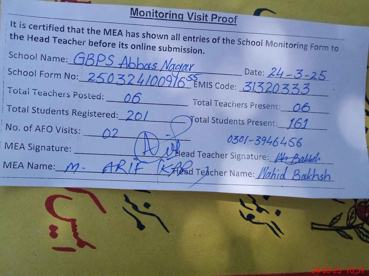 | EMIS Code: 31320333 | Name of School: GPS ABAAS NAGAR | |||
