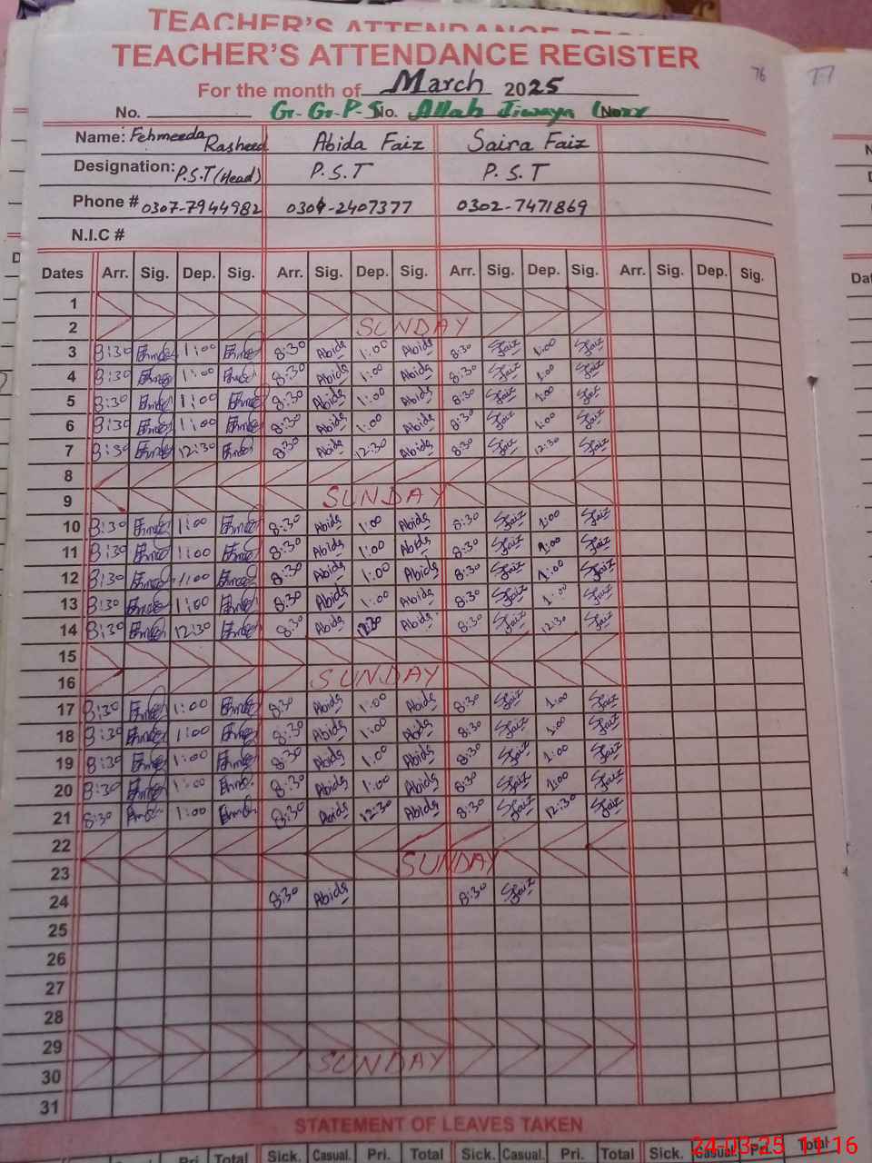 | Name: FA**** RA**** Designation: (School Headmaster's/Headmistress's) PST/PTC/JV Phone/Cell Number: 03**** |
