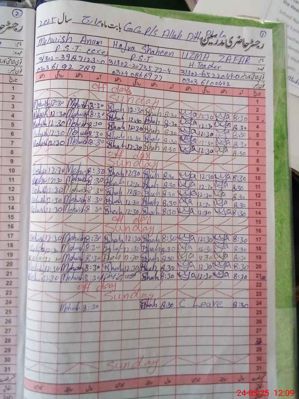 | 31**** | Uz**** Za**** | PST | Regular | 0 | 0 | 0 | 0 | 0 | 0 | 0 | 0 | 0 | Casual |