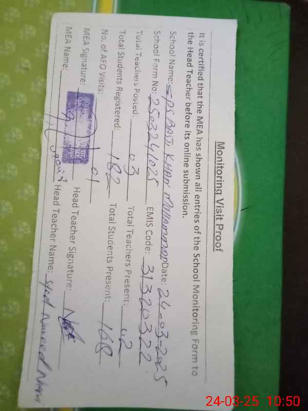 | EMIS Code: 31320322 | Name of School: GPS BASTI KHAN MUHAMMAD | |||