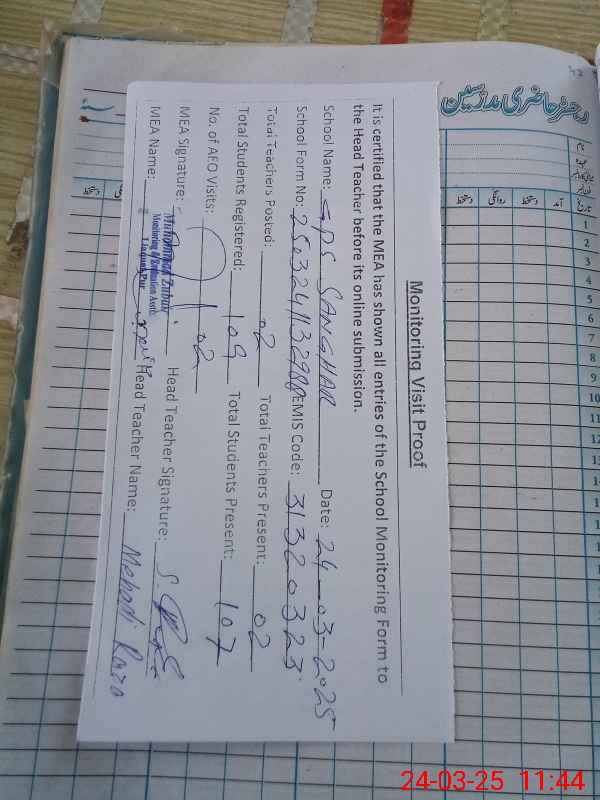 | EMIS Code: 31320323 | Name of School: GPS SANGHAR | |||