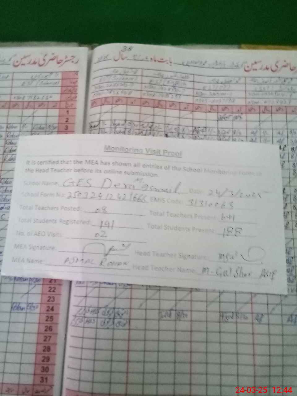 | EMIS Code: 31310063 | Name of School: GES DERA ISMAIL | |||