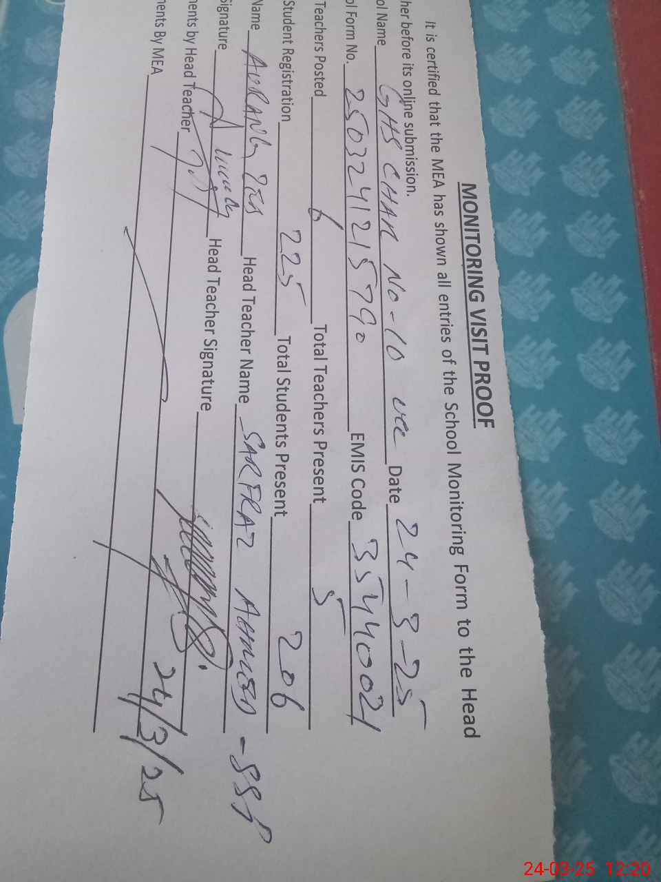 | EMIS Code: 35440021 | Name of School: GHS CHAK NO. 10 UCC | |||