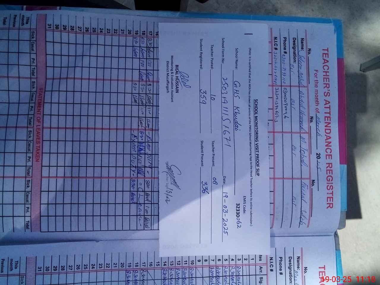 | EMIS Code: 32330062 | Name of School: GHS KHUDAI | |||
