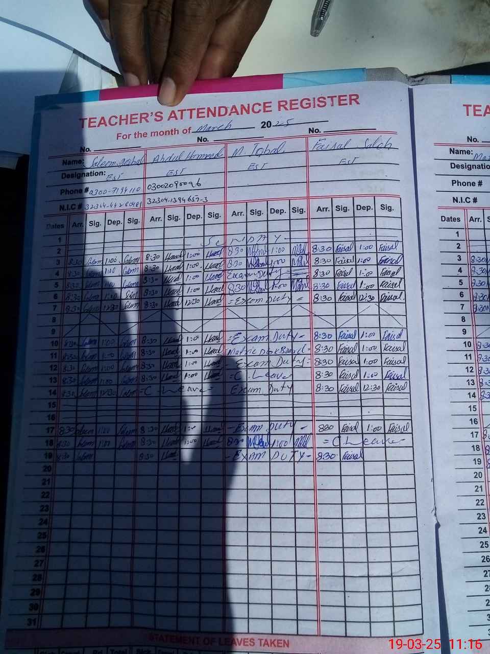 | Name: SA**** IQ**** Designation: (School Headmaster's/Headmistress's) EST OT Phone/Cell Number: 03**** |