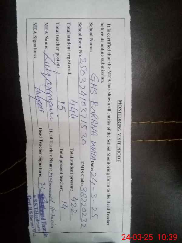 | EMIS Code: 38220232 | Name of School: GHS BORANA WALA | |||