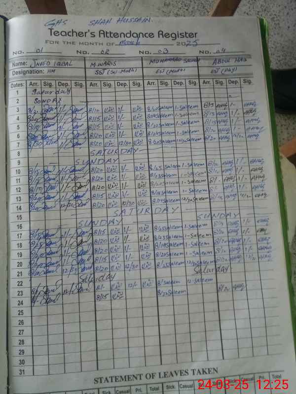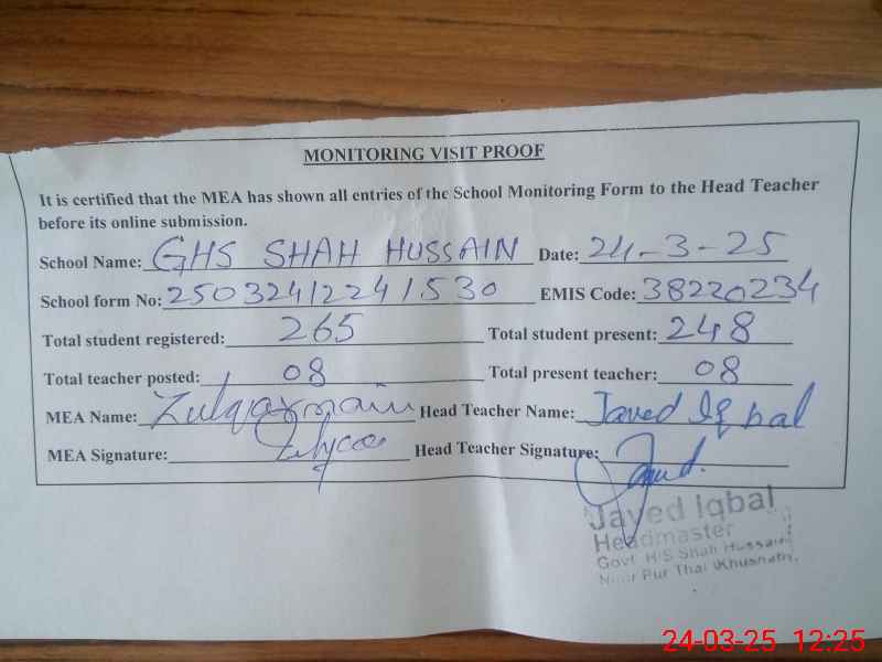| EMIS Code: 38220234 | Name of School: GHS SHAH HUSSAIN | |||