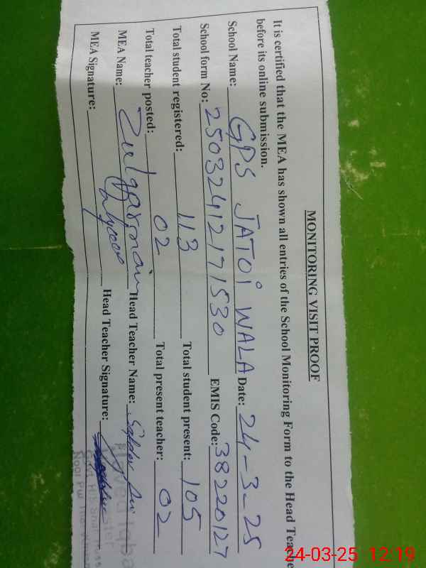 | EMIS Code: 38220127 | Name of School: GPS JATOI WALA | |||