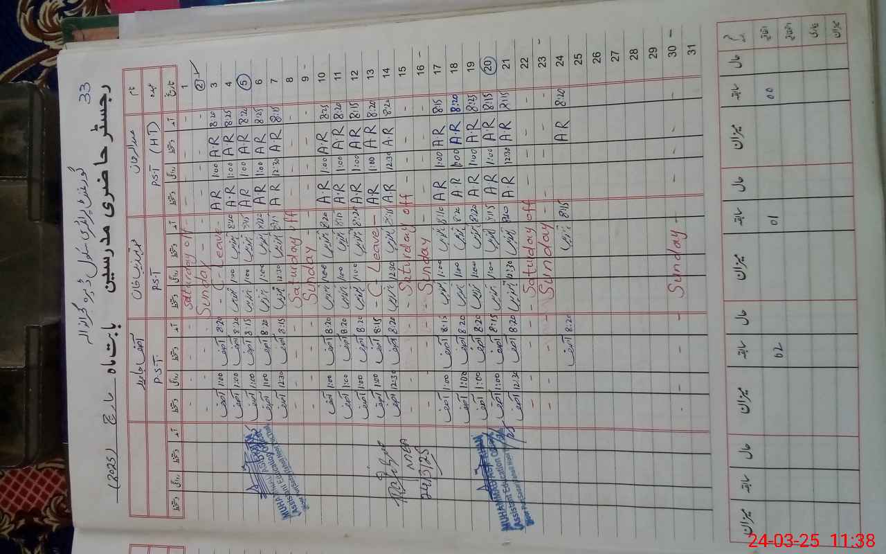 | District: KHUSHAB | Tehsil: NOORPUR THAL | Markaz: NOOR PUR SADAR (MALE) | Level: Primary | |