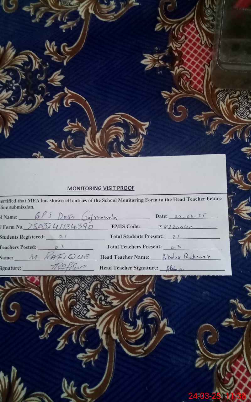 | EMIS Code: 38220040 | Name of School: GPS DERA GUJRAN WALA | |||