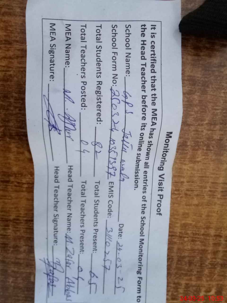 | EMIS Code: 31110257 | Name of School: GPS JATTU WALA | |||