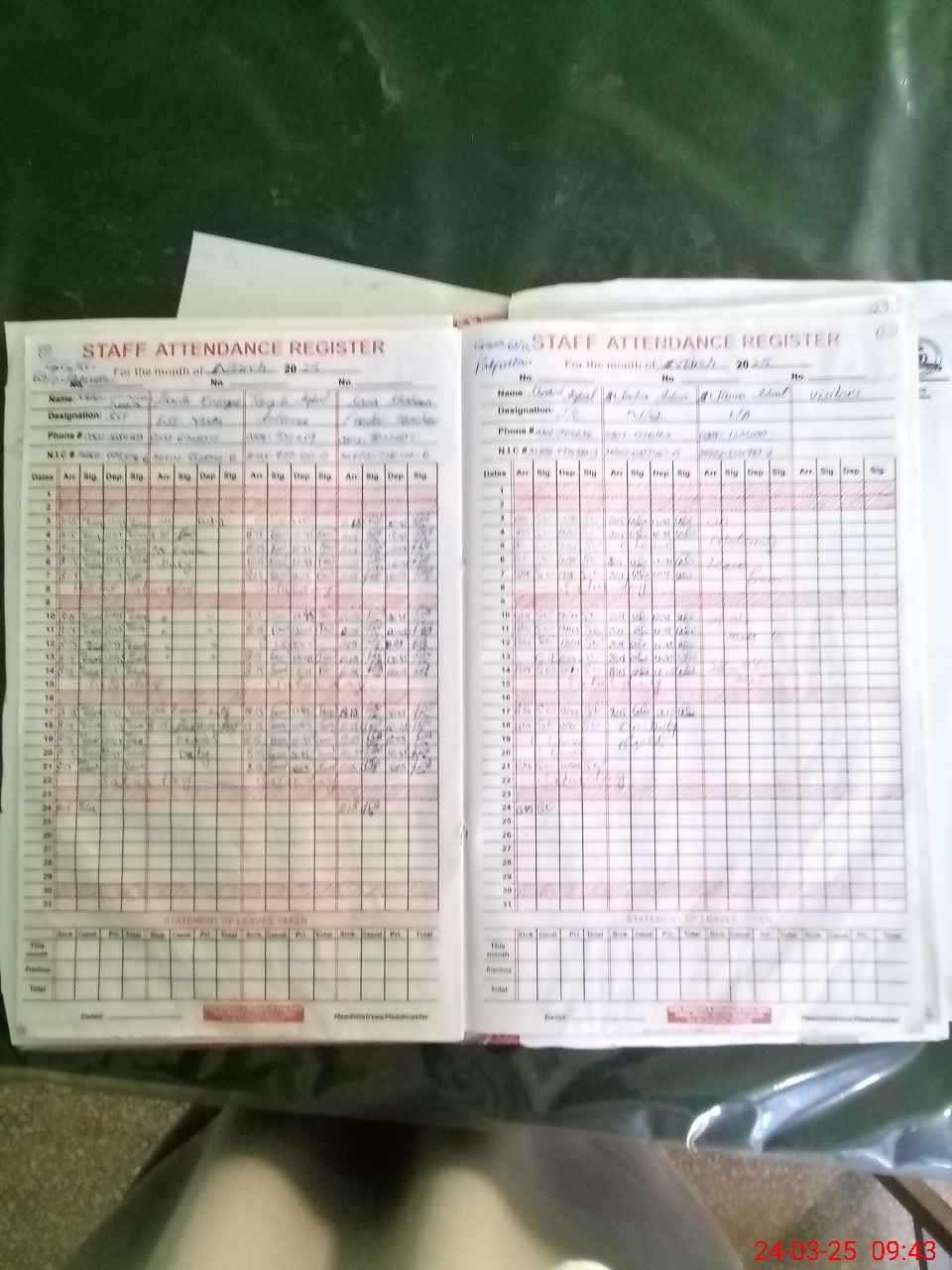 | CNIC | Full Name | Designation | R/C | Absence During Last Calender Month |