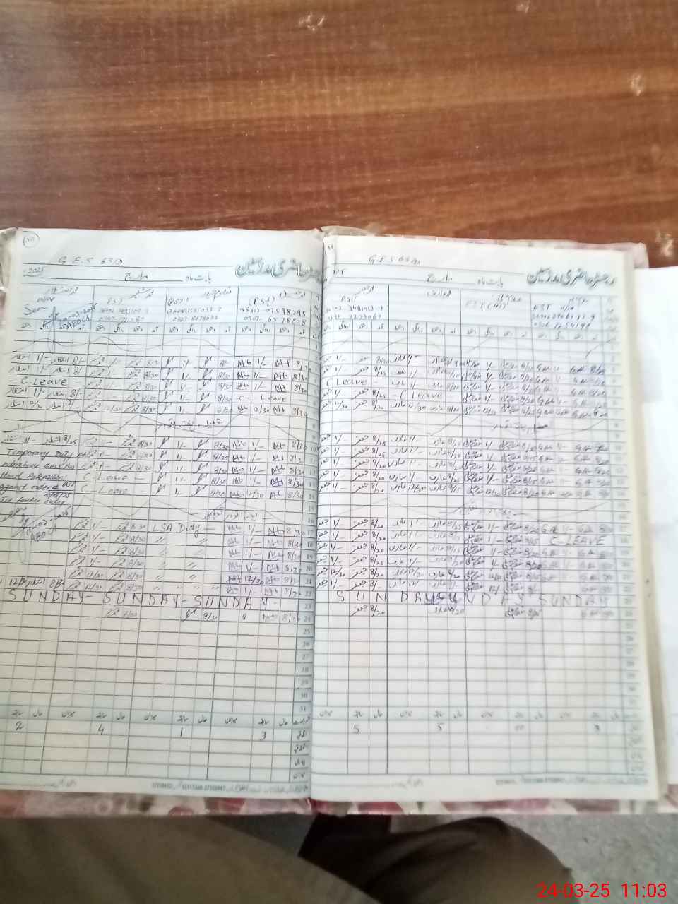 | Leave | Duty | Absent | Maternity | Medical | Ex- Pak |