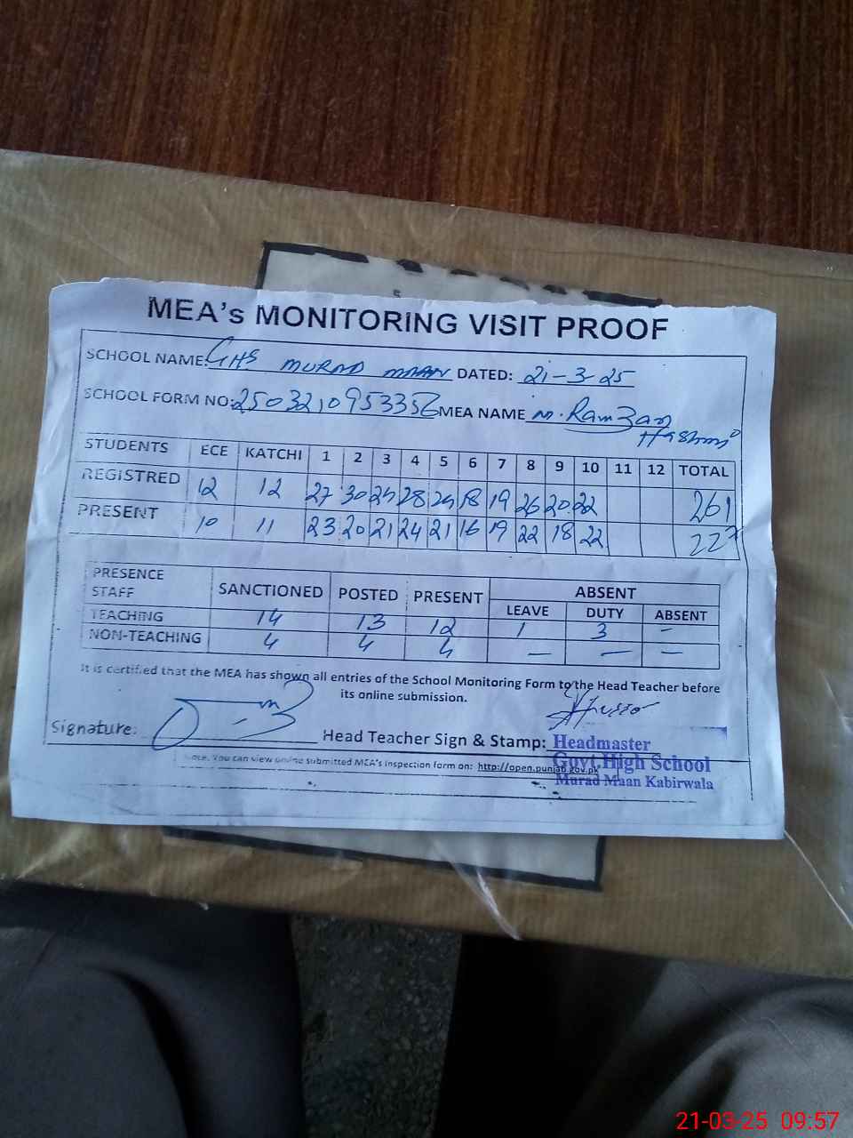 | EMIS Code: 36410062 | Name of School: GHS MURAD MAAN, SARAI SIDHU | |||