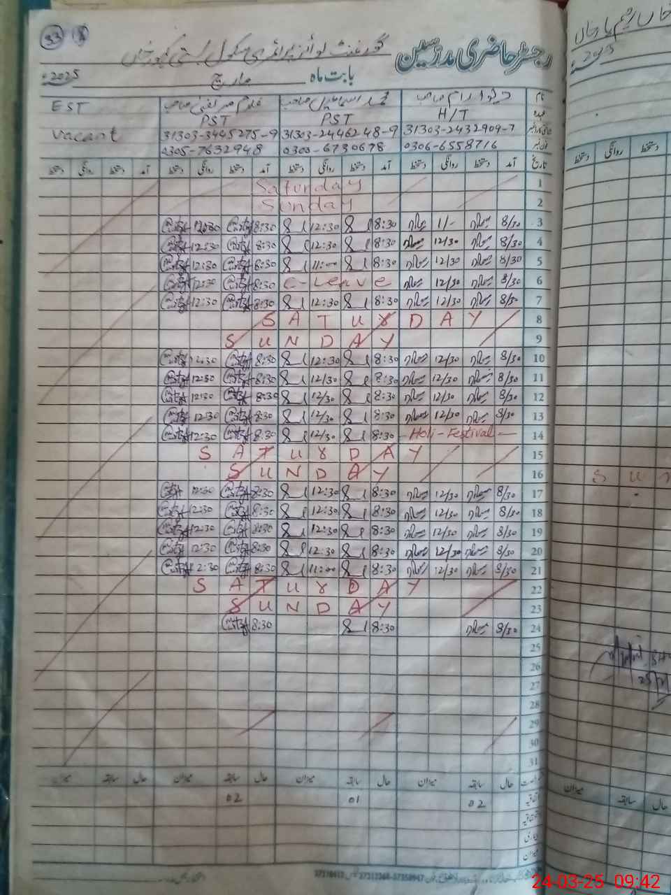 | Name: Gh**** Mu**** Designation: (School Headmaster's/Headmistress's) P S T Phone/Cell Number: 03**** |