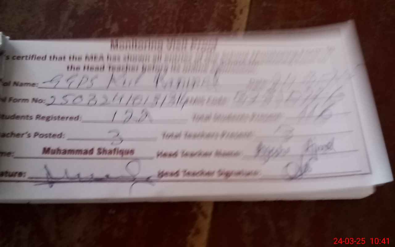 | EMIS Code: 32310226 | Name of School: GGPS KULL KANWAL | |||