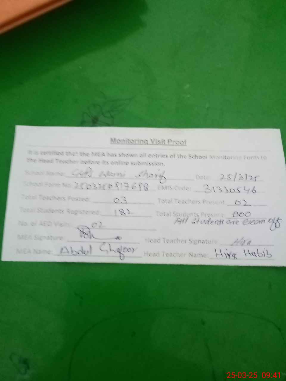 | Certified that this School was Inspected by the Undersigned MEA/DMO Today and the Information Stated Above is as Per Record. | |||||