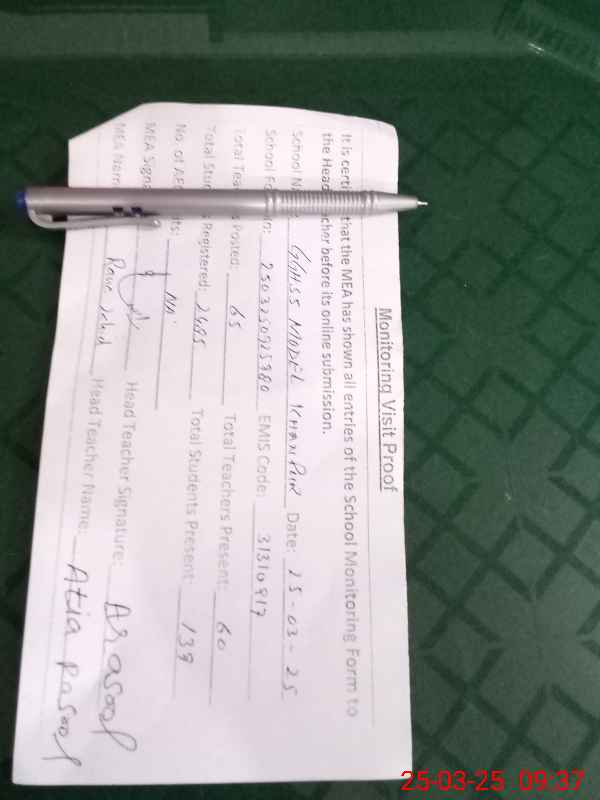 | Certified that this School was Inspected by the Undersigned MEA/DMO Today and the Information Stated Above is as Per Record. | |||||