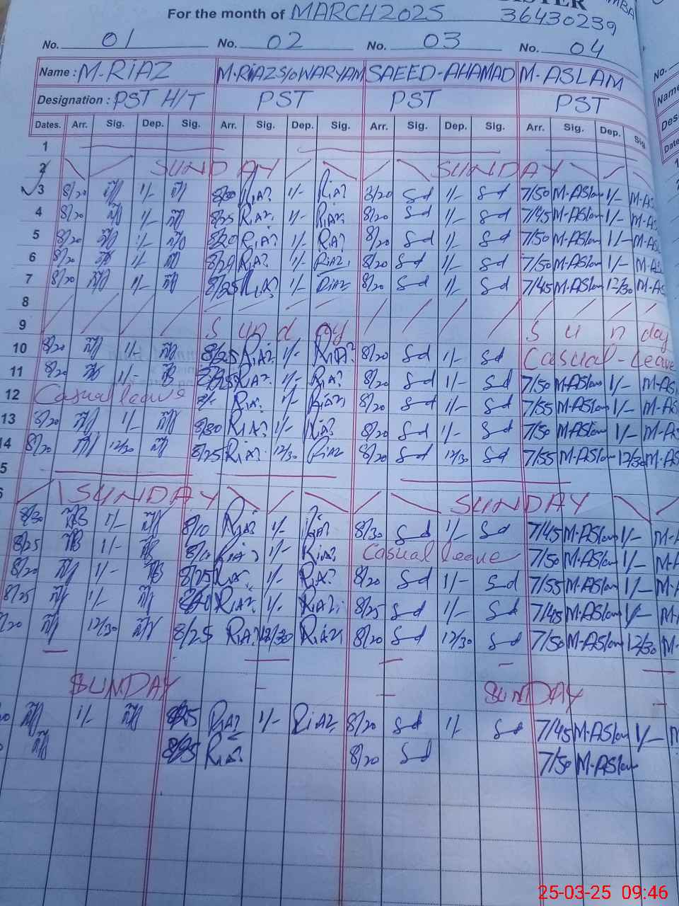 | CNIC | Full Name | Designation | R/C | Absence During Last Calender Month |