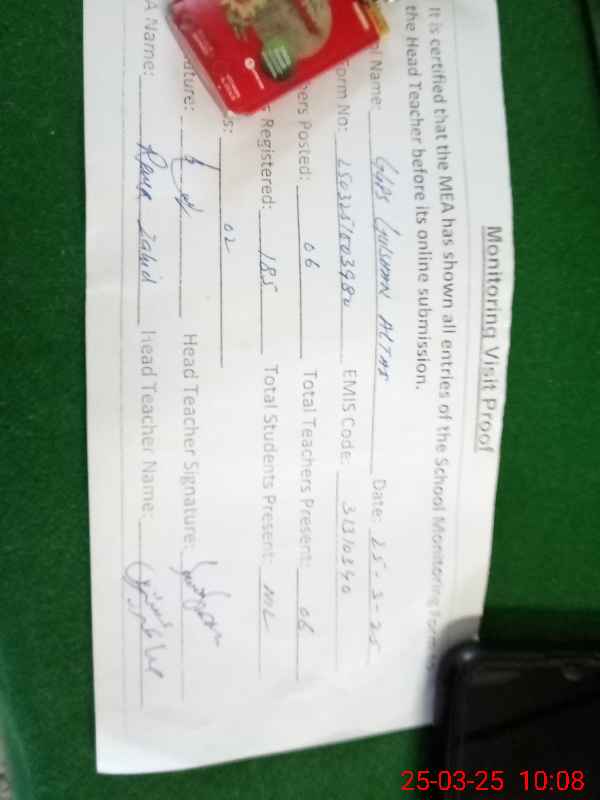 | EMIS Code: 31310340 | Name of School: GGPS GULSHAN ALTAF IRRIGATION COLONY | |||