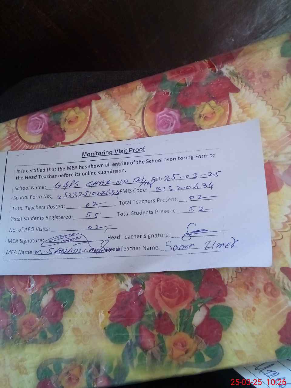 | EMIS Code: 31320634 | Name of School: GGPS CHAK NO.121/NP | |||