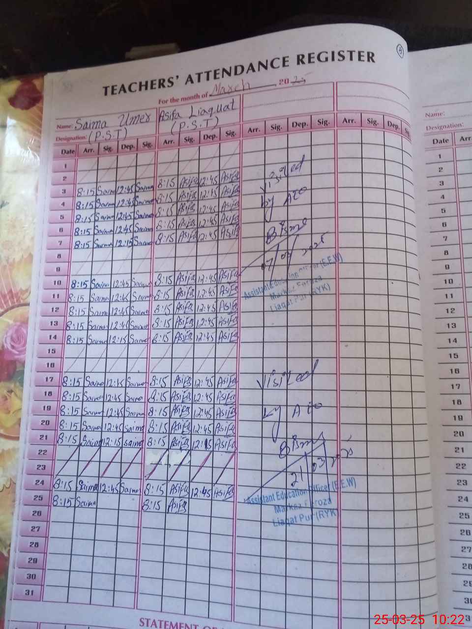 | District: RAHIMYAR KHAN | Tehsil: LIAQATPUR | Markaz: FEROZA - FEMALE | Level: Primary | |
