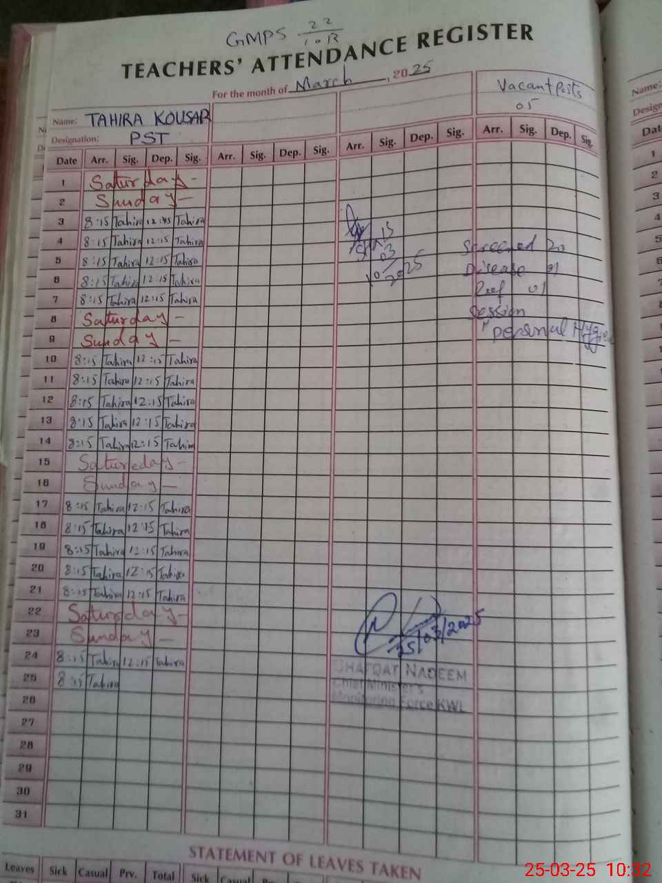 | Name: Ta**** Ko**** Designation: (School Headmaster's/Headmistress's) PST Phone/Cell Number: 03**** |