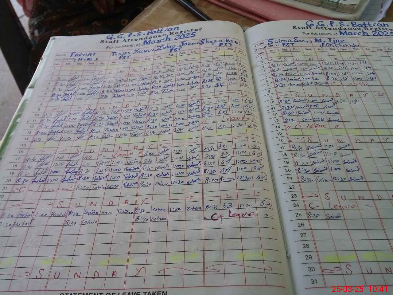 | Leave | Duty | Absent | Maternity | Medical | Ex- Pak |