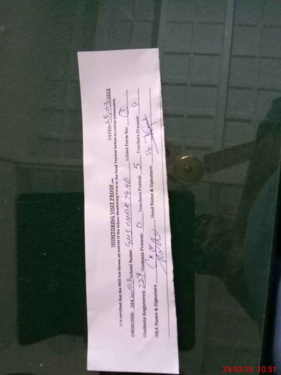 | Certified that this School was Inspected by the Undersigned MEA/DMO Today and the Information Stated Above is as Per Record. | |||||