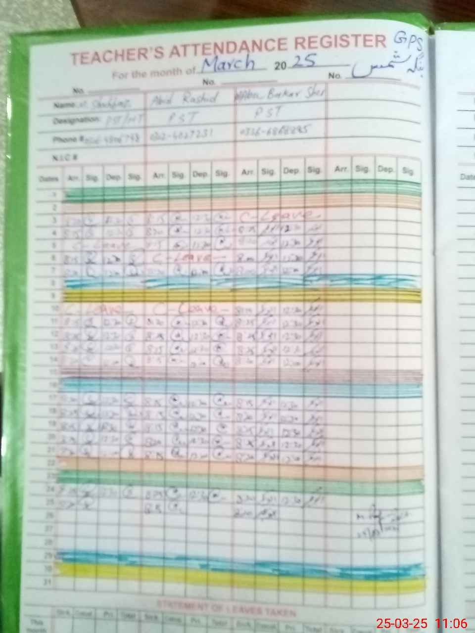 | Name: Mu**** Sh**** Designation: (School Headmaster's/Headmistress's) PST Phone/Cell Number: 03**** |