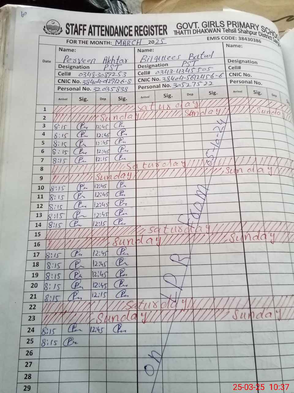 | Name: PA**** AK**** Designation: (School Headmaster's/Headmistress's) PST (Sc-Math) Phone/Cell Number: 03**** |