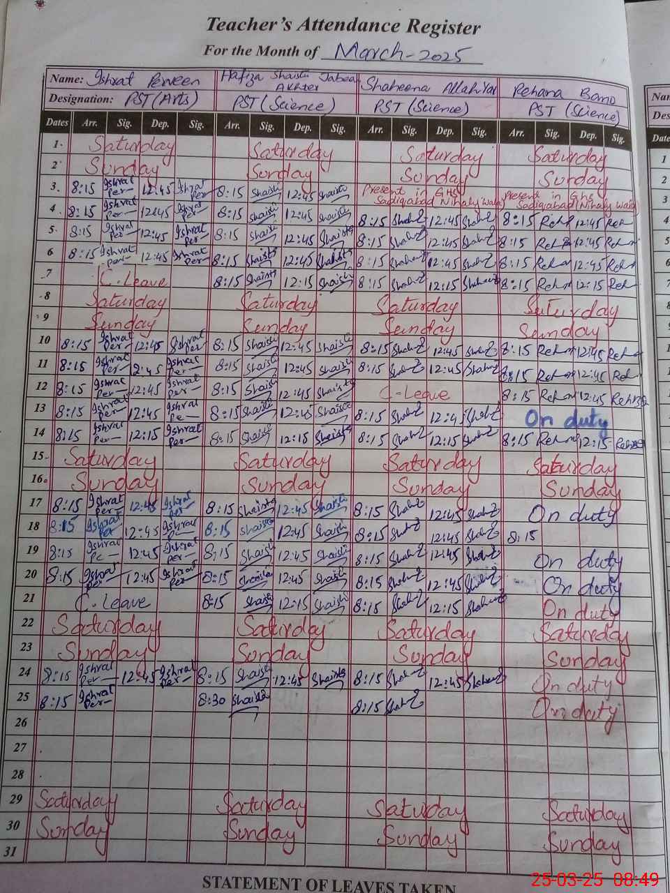 | 36**** | Re**** Ba**** | PST | Regular | 0 | 0 | 0 | 0 | 0 | 0 | 0 | 0 | 0 | Exam Duty |