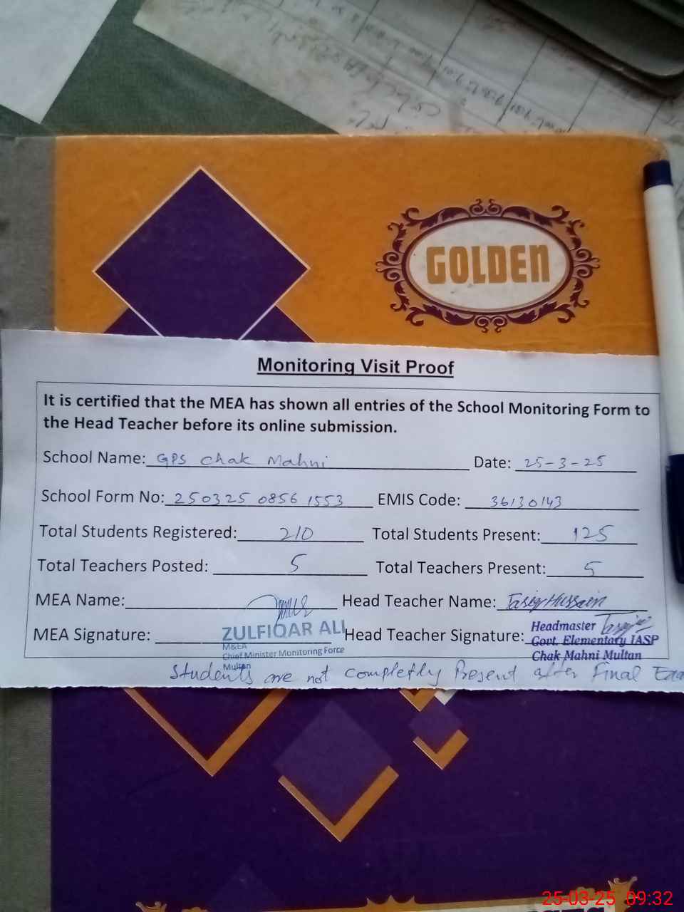 | EMIS Code: 36130143 | Name of School: GPS CHAK MAHNI | |||