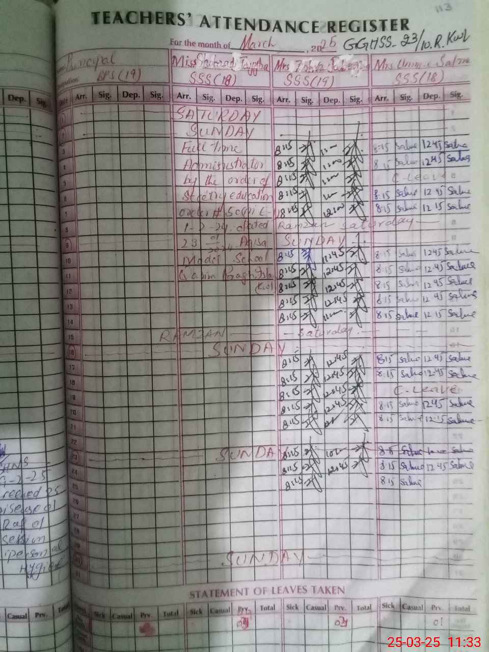 | 36**** | Am**** Me**** | 3 | 1 | 0 | 0 | 0 | 0 | 0 | 0 | 0 | 0 | 0 | Exam Duty |