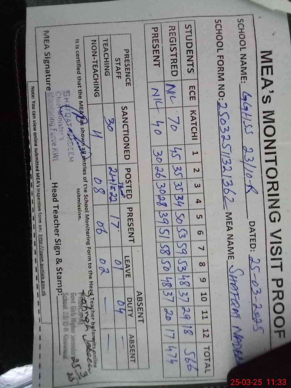 | EMIS Code: 36420050 | Name of School: GGHSS 23/10-R, KACHA KHUH | |||