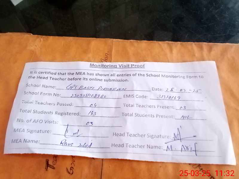 | EMIS Code: 31310169 | Name of School: GPS BASTI PIRHARAN | |||