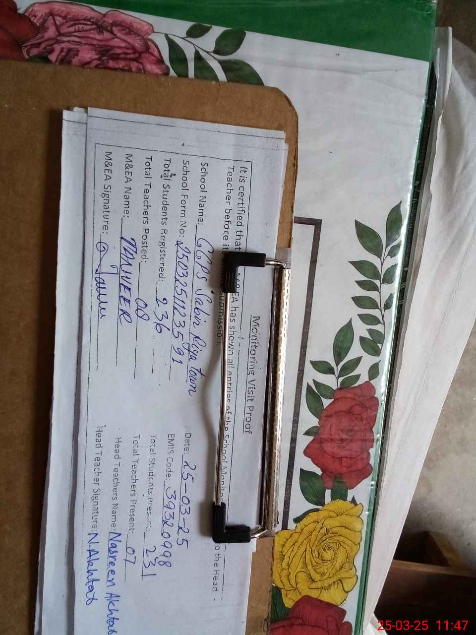 | Attendance Register | Head Teacher | MEA with School | Visit Proof |