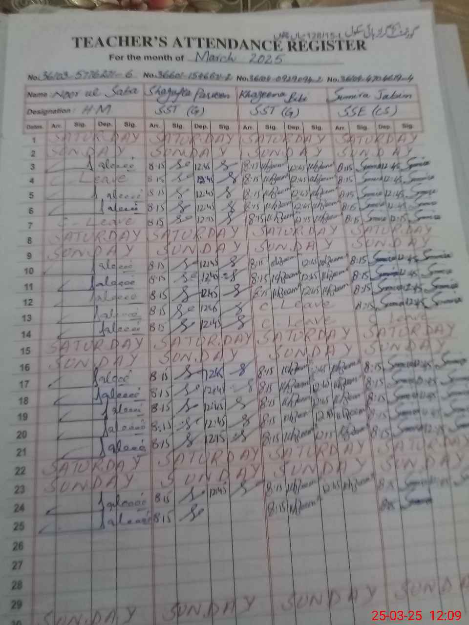 | 36**** | Sh**** Ja**** | PST | Regular | 0 | 0 | 0 | 0 | 0 | 0 | 0 | 0 | 0 | Exam Duty |