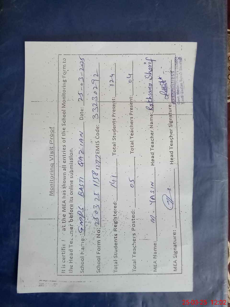 | EMIS Code: 33230292 | Name of School: GMPS BASTI QAZIAN | |||
