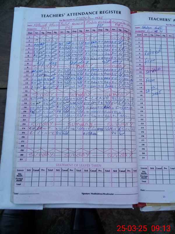 | Name: SU**** PA**** Designation: (School Headmaster's/Headmistress's) PST Phone/Cell Number: 03**** |