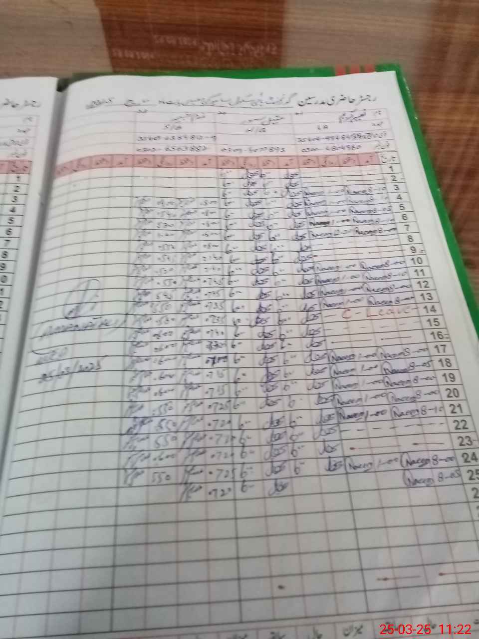 | CNIC | Full Name | Designation | R/C | Absence During Last Calender Month |