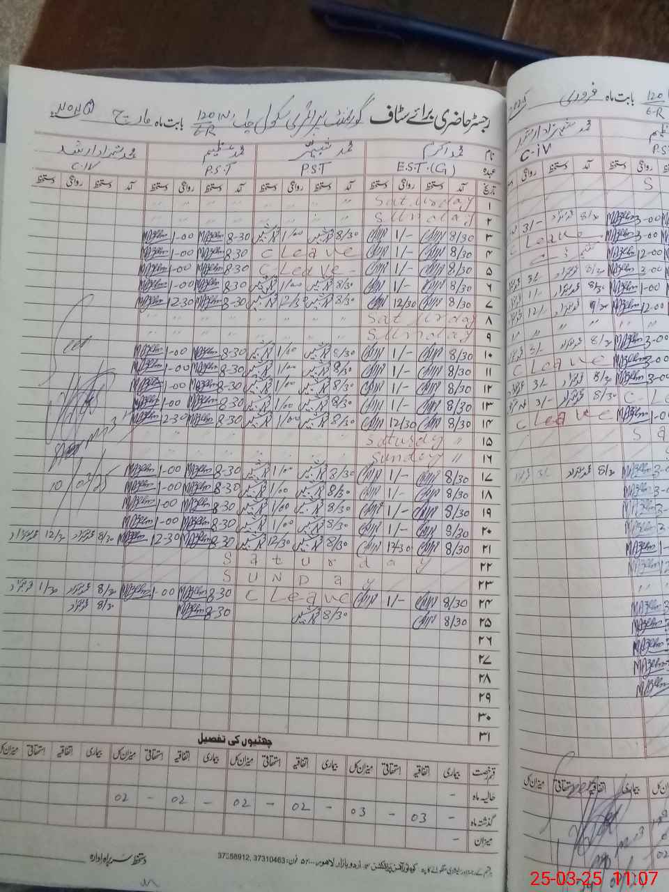 | CNIC | Full Name | Designation | R/C | Absence During Last Calender Month |