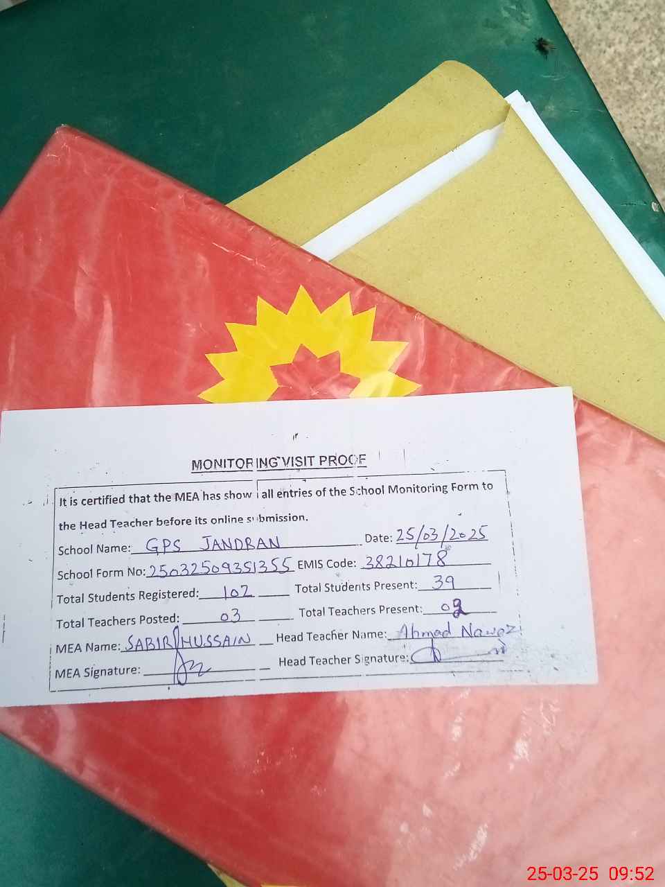| EMIS Code: 38210178 | Name of School: GPS JANDRAN | |||