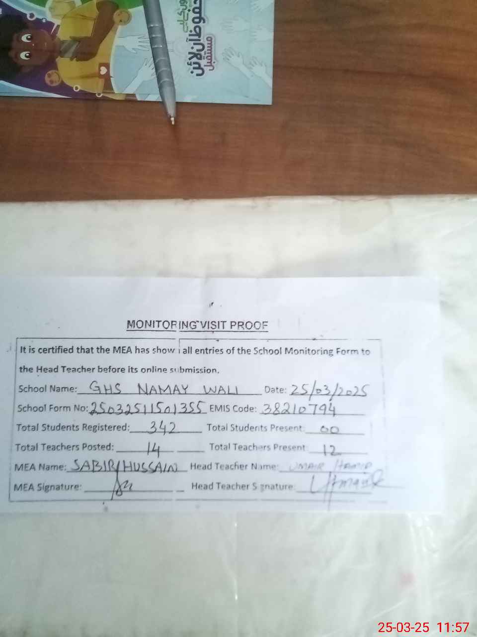 | EMIS Code: 38210794 | Name of School: GHS NAMAY WALI | |||