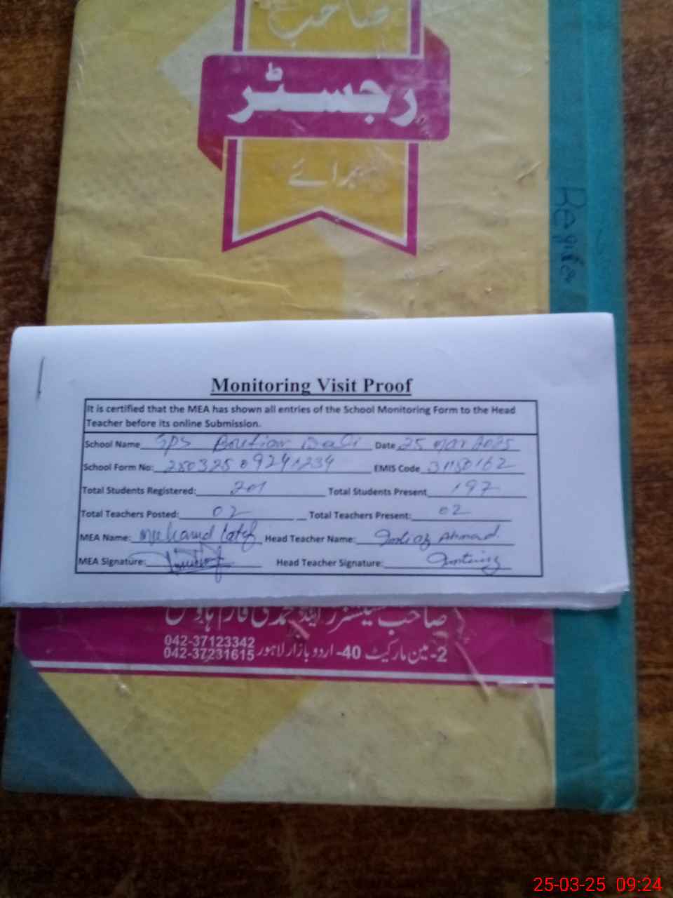 | EMIS Code: 31150162 | Name of School: GPS BUTIAN WALI | |||