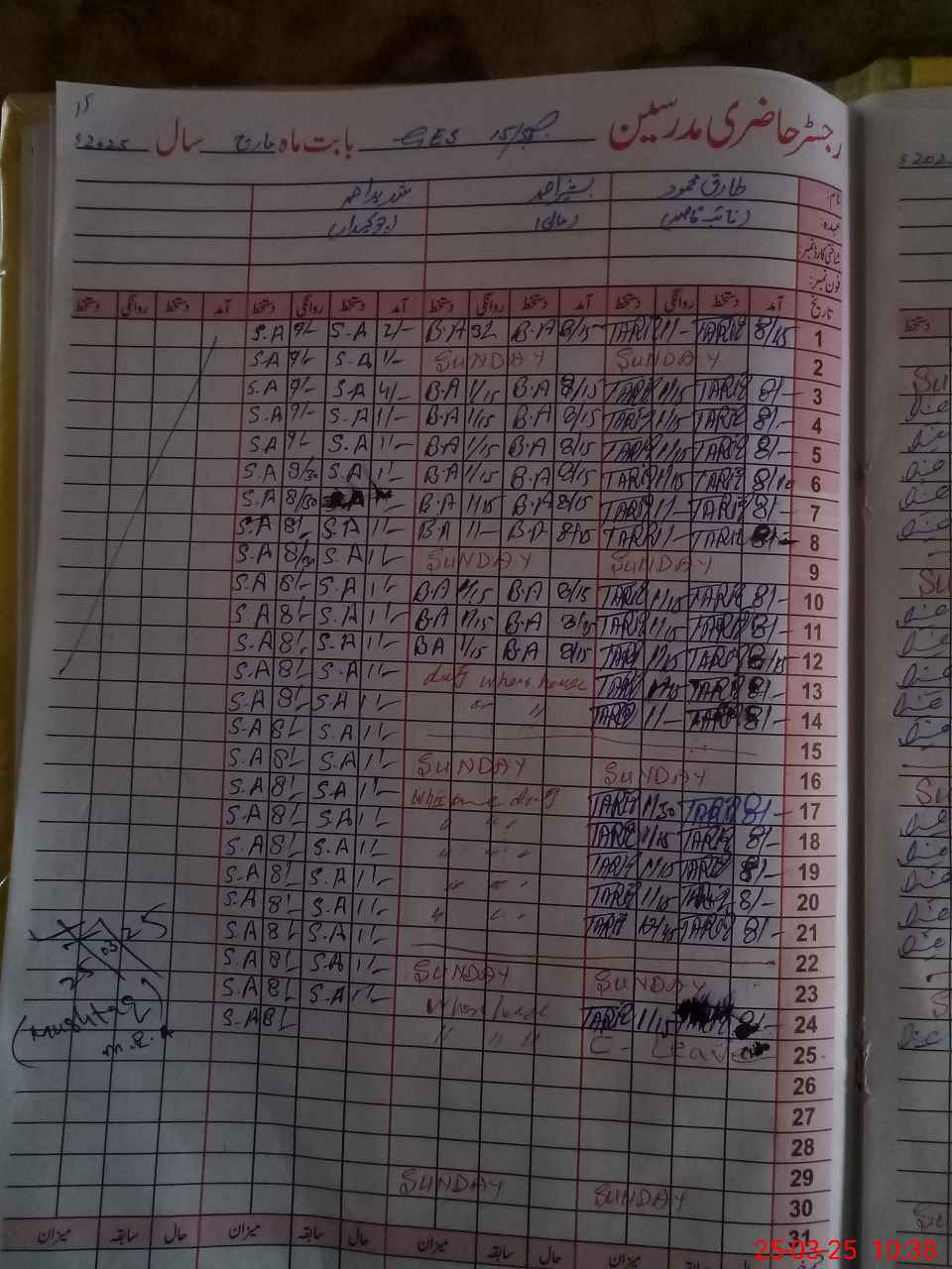 | CNIC | Full Name | Designation | R/C | Absence During Last Calender Month |