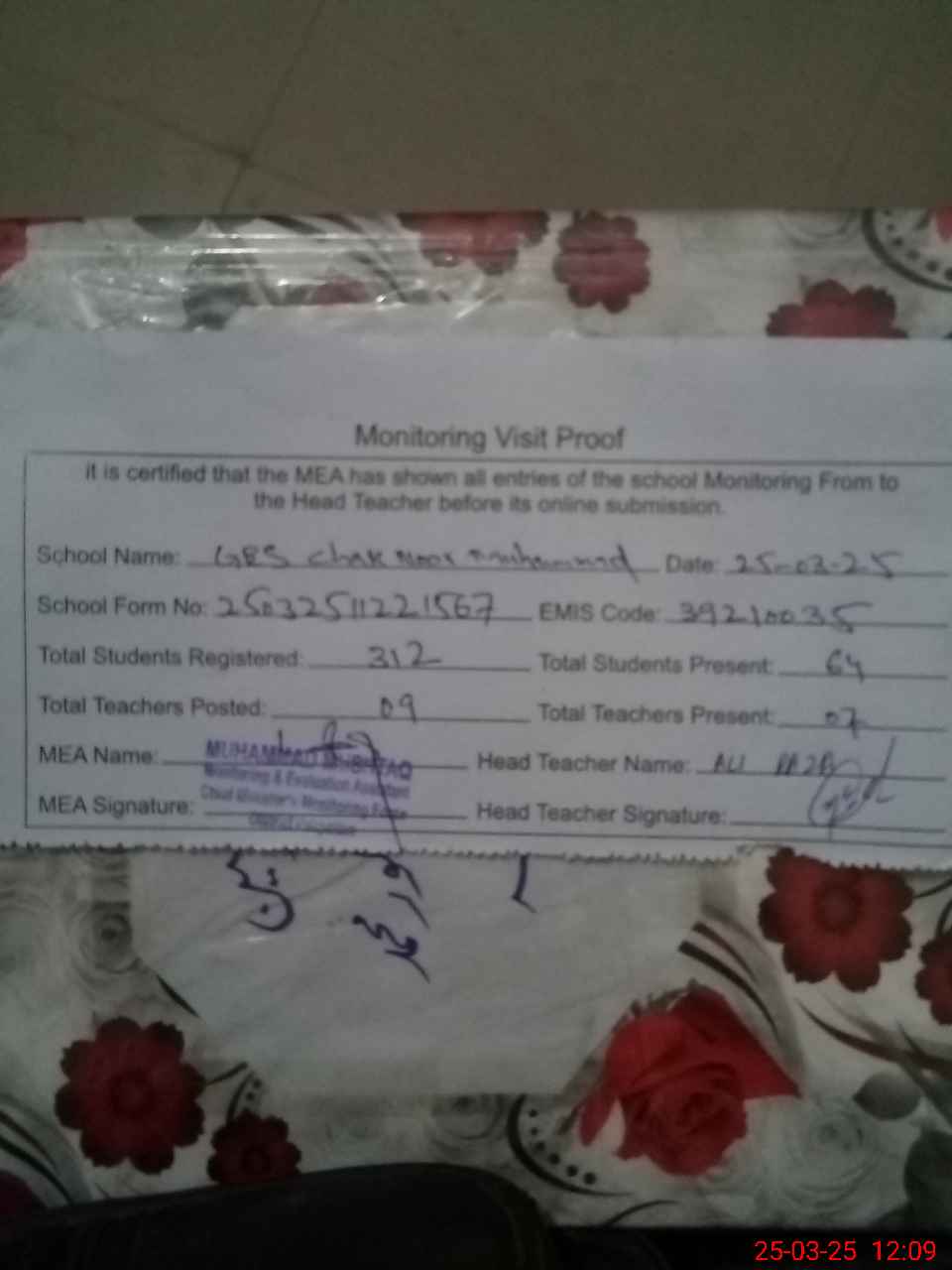| EMIS Code: 39210035 | Name of School: GES CHAK NOOR MUHAMMAD | |||