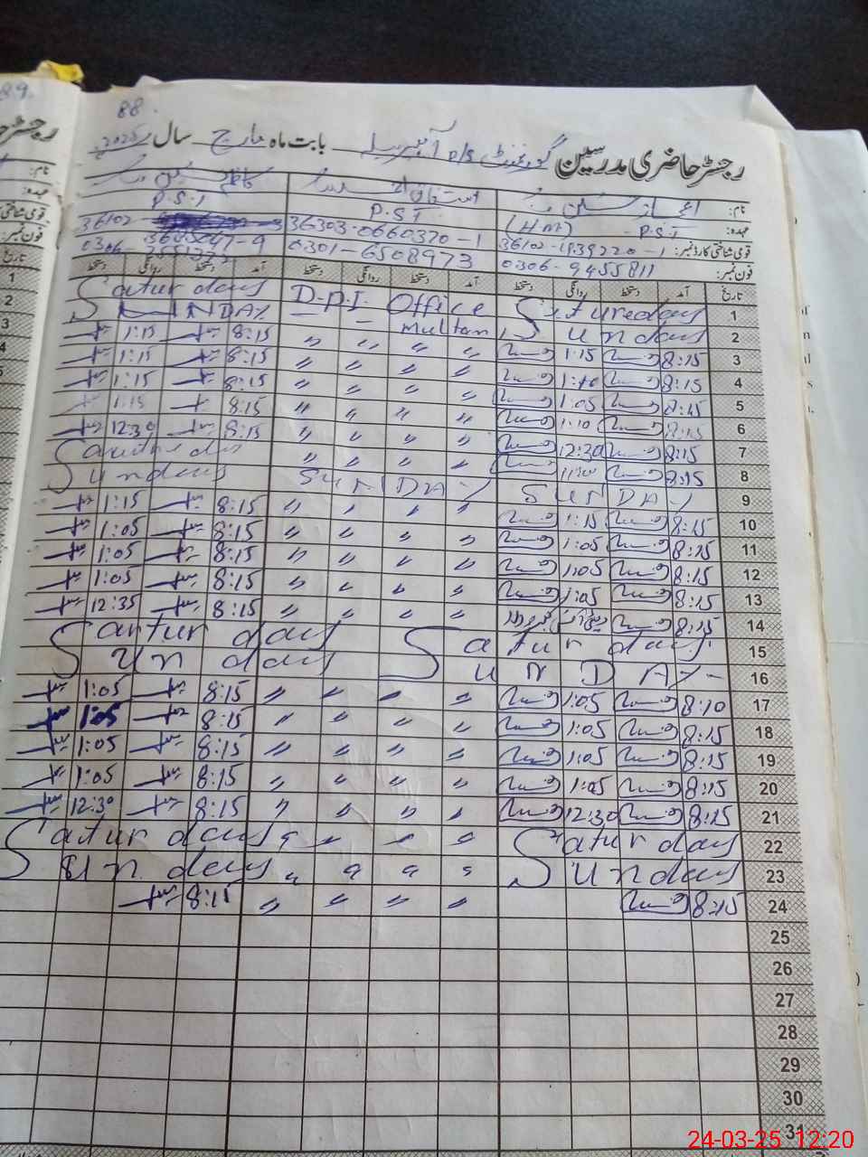 | 36**** | As**** Ah**** | 1 | 0 | 28 | 0 | 0 | 0 | 0 | 0 | 0 | 0 | Absent (Un-Authorized) | |