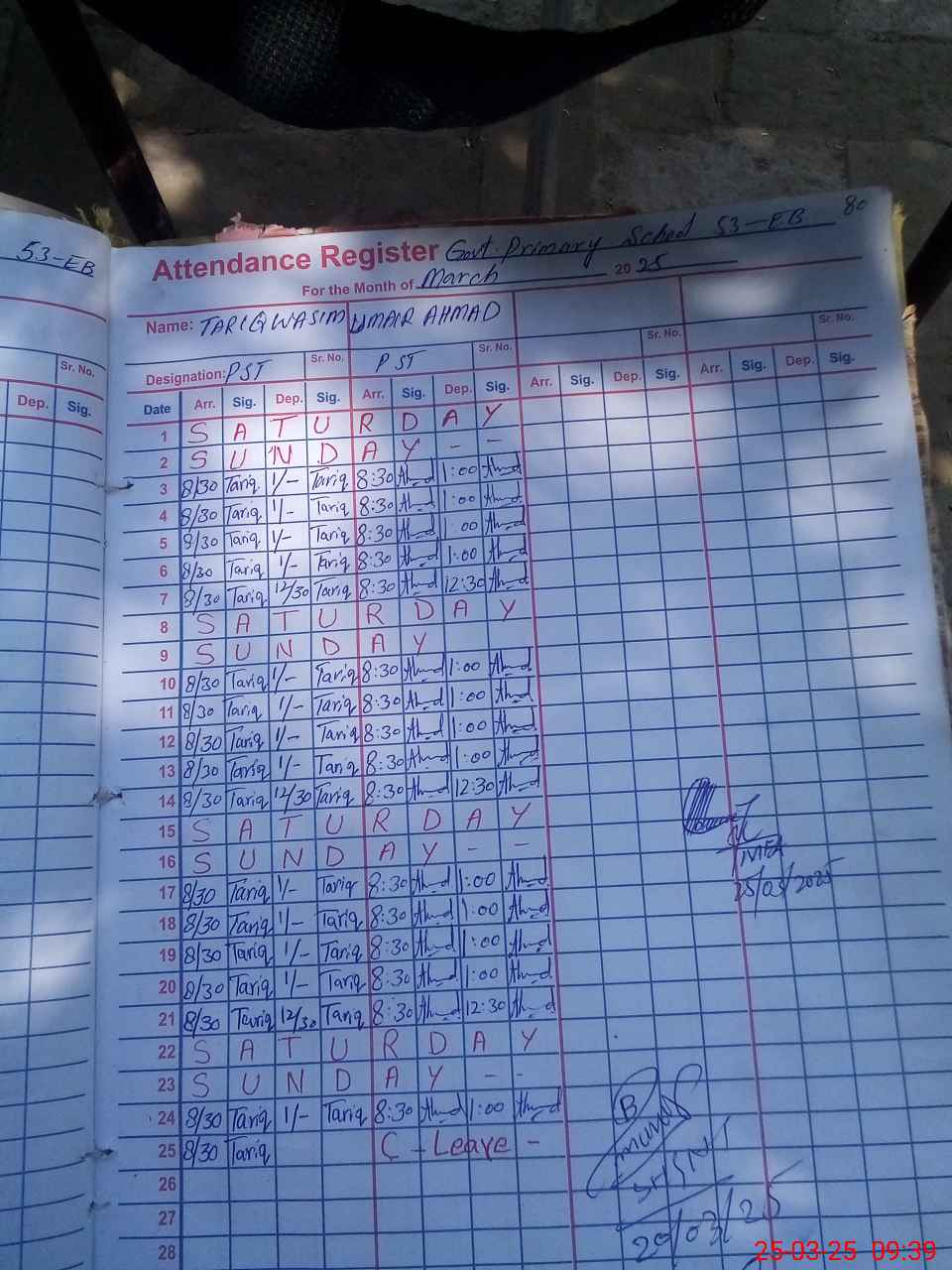 | Name: TA**** WA**** Designation: (School Headmaster's/Headmistress's) PST Phone/Cell Number: 03**** |