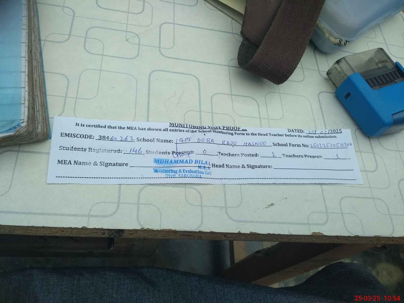 | EMIS Code: 38460262 | Name of School: GPS DERA RAJU HASNEE | |||